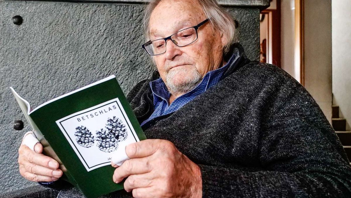 Jacques Guidon sföglia in sia nouva, e davo «Nuschellas» da l’on passà, seguonda publicaziun d’impissamaints ed evenimaints, nomnada «Betschlas» (fotografia: Jon Duschletta).