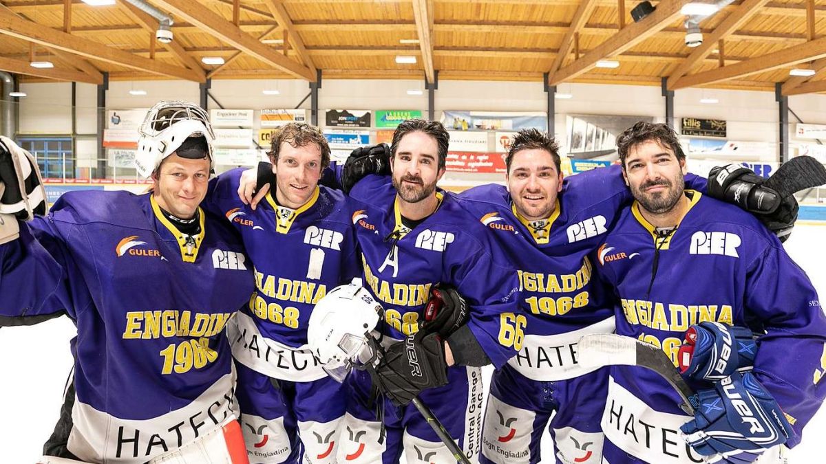 Fünf Spieler des CdH Engiadina haben am Samstag die letzte Partie bestritten. Den Rücktritt erklärt haben: Mario Siegenthaler, Andri Riatsch, Domenic Bott, Domenic Tissi und Domenique Campos (Foto: Marco Ritzmann).