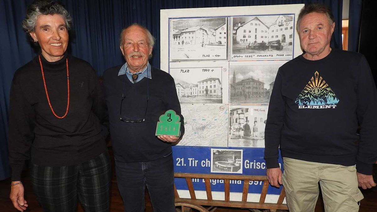 Chatrina Ritzmann (da schnestra), Cla Sarott ed Ernest Vital han accumpagnà il davomezdi pels seniors da Sent. Cla Sarott tegna in man la placketta verda pel bügl da Sala (fotografia: Annatina Filli).