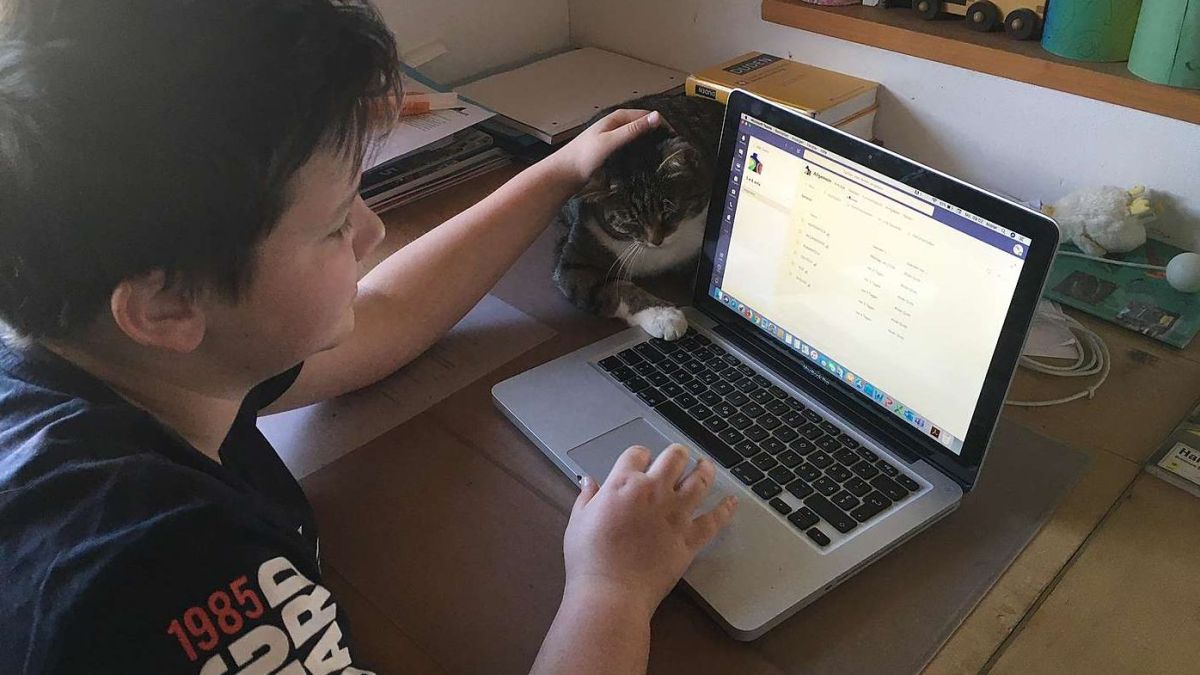 Flurin, il figl dad Aita Zanetti, cun cumpagnia pro’l homeschooling (fotografia: mad).