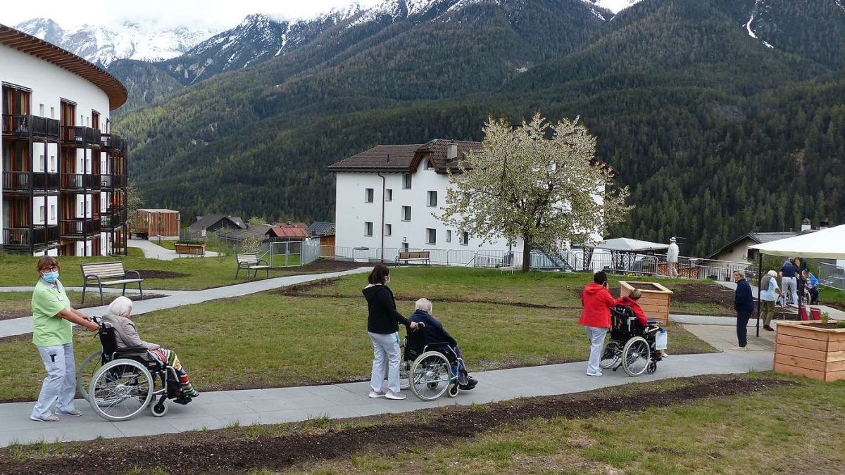 Las abitantas ed ils abitants da la dmura Chasa Puntota pon trar a nüz üna nouva sporta: Daspö marcurdi pona far üna spassegiada sün nouvas sendas sül prà suot la dmura (fotografia: Flurin Andry).