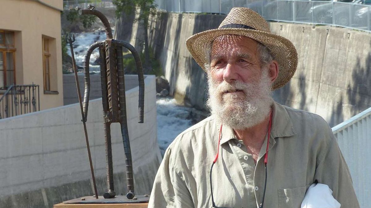 L’artist Alesch Vital da Scuol sper sia sculptura, il «patrun da la Clozza». fotografia: Flurin Andry