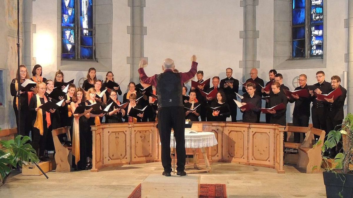 La «Engadiner Kantorei» in acziun (fotografia: Benedict Stecher).