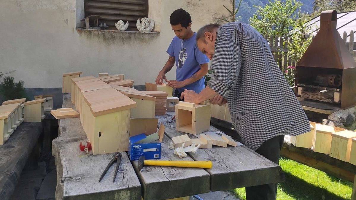 A Lavin han ils voluntaris imprais a far chasinas per las randulinas (fotografia: Sara Castillo).