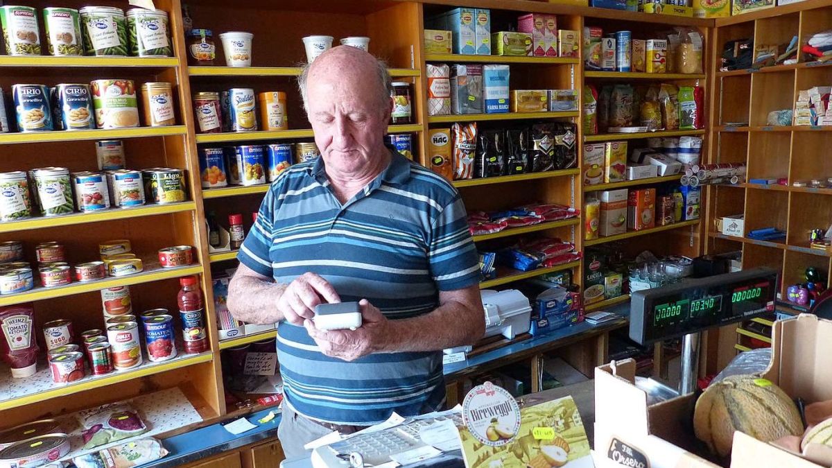 Il butier Men Janett in acziun in sia butia a Tschlin.