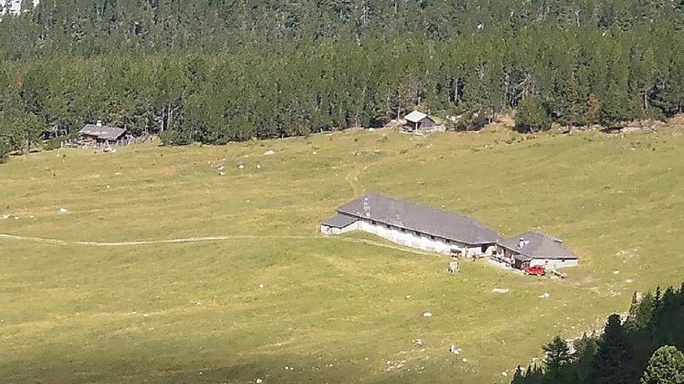 La fotografia muossa l’Alp Plavna a Tarasp cun duos chamonnas da chatscha. fotografia: Benedict Stecher