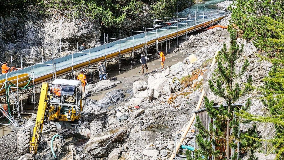2017 wurde das Tosbecken unterhalb der EKW-Staumauer Punt dal Gall erfolgreich von PCB gesäubert. Foto: Jon Duschletta