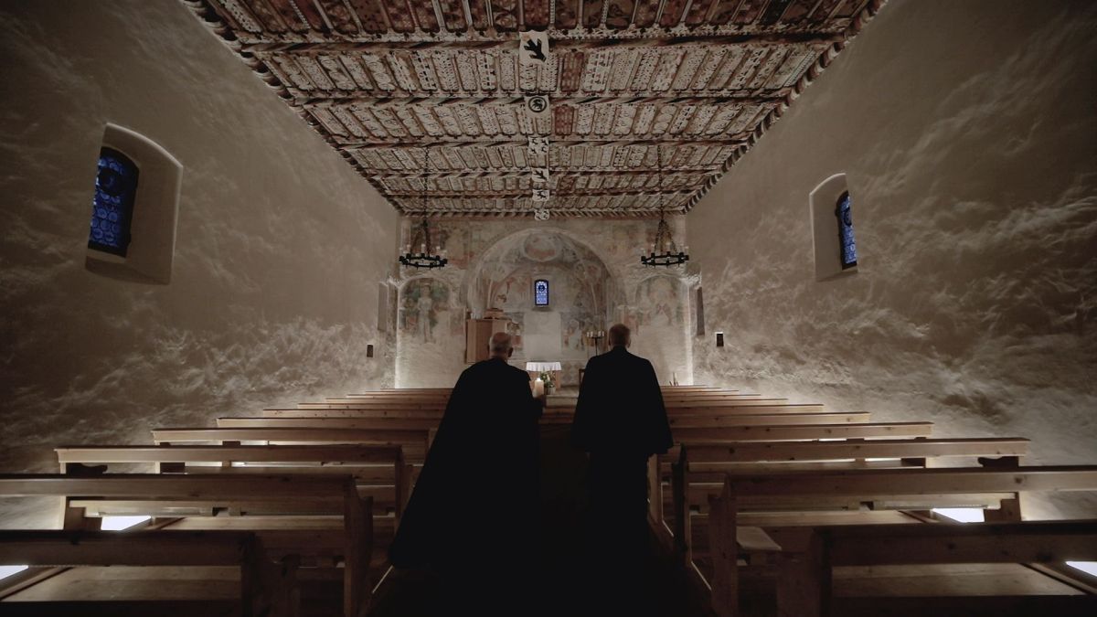 Montagmorgen in der Früh. Draussen ist es noch dunkel, in der Kirche San Gian in Celerina leuchten jedoch ein paar Kerzen. Der Pontresiner Pfarrer Theo Haupt und Pfarrer Helmut Heck aus Celerina begehen – vor leeren Bänken und ...