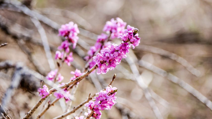 Kaum ist der Schnee am Waldrand geschmolzen, frohlockt schon hier und dort der Echte Seidelbast (Daphne mezereum) mit seinen zart duftenden, rosa bis purpurroten Blütenständen, welche die ansonsten noch blätterlosen Zweigspitzen verzieren.