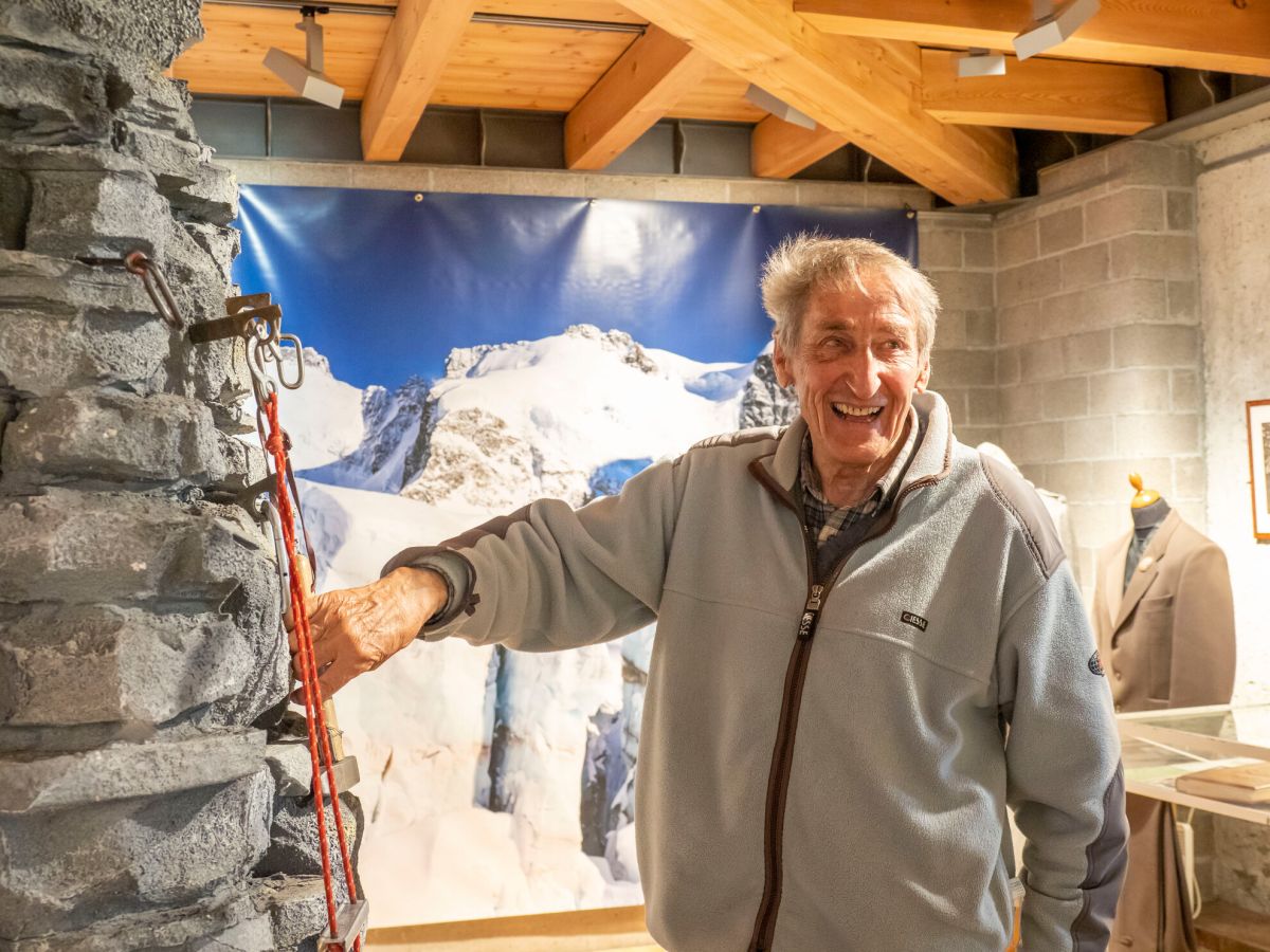 Vor hundert Jahren, viel weiter unten in der Val Morteratsch, wurden solche Eishöhlen für Touristen eigens ausgeleuchtet. Im Museum Alpin in Pontresina zeugt ein Schwarzweissfoto davon. Mathis Roffler ist Ehrenmitglied des Museums, einen neuen Eispickel haben sie ihm aus diesem Anlass geschenkt. «Er ist ein wandelndes Lexikon», lobt die Leiterin des Museums Annemarie Brülisauer und ergänzt: «Sehr engagiert ist er auch. Vor 50 Jahren haben Bergführer aus Pontresina beschlossen, dieses Museum zu gründen. Und es war Mathis, der ein passendes Haus organisiert hat, sodass das Museum 1986 eröffnen konnte.»