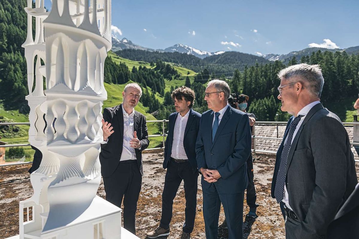 Im Beisein von Bundespräsident Guy Parmelin wurde heute in Mulegns das Origen-Projekt eines Weissen Turms präsentiert. Der 29 Meter-Turm soll als kulturell nutzbare Kunstinstallation im Sommer 2022 vor Ort mittels 3D-Drucker aus Beton gedruckt werden, 3,5 Millionen kosten und fünf Jahre stehen.