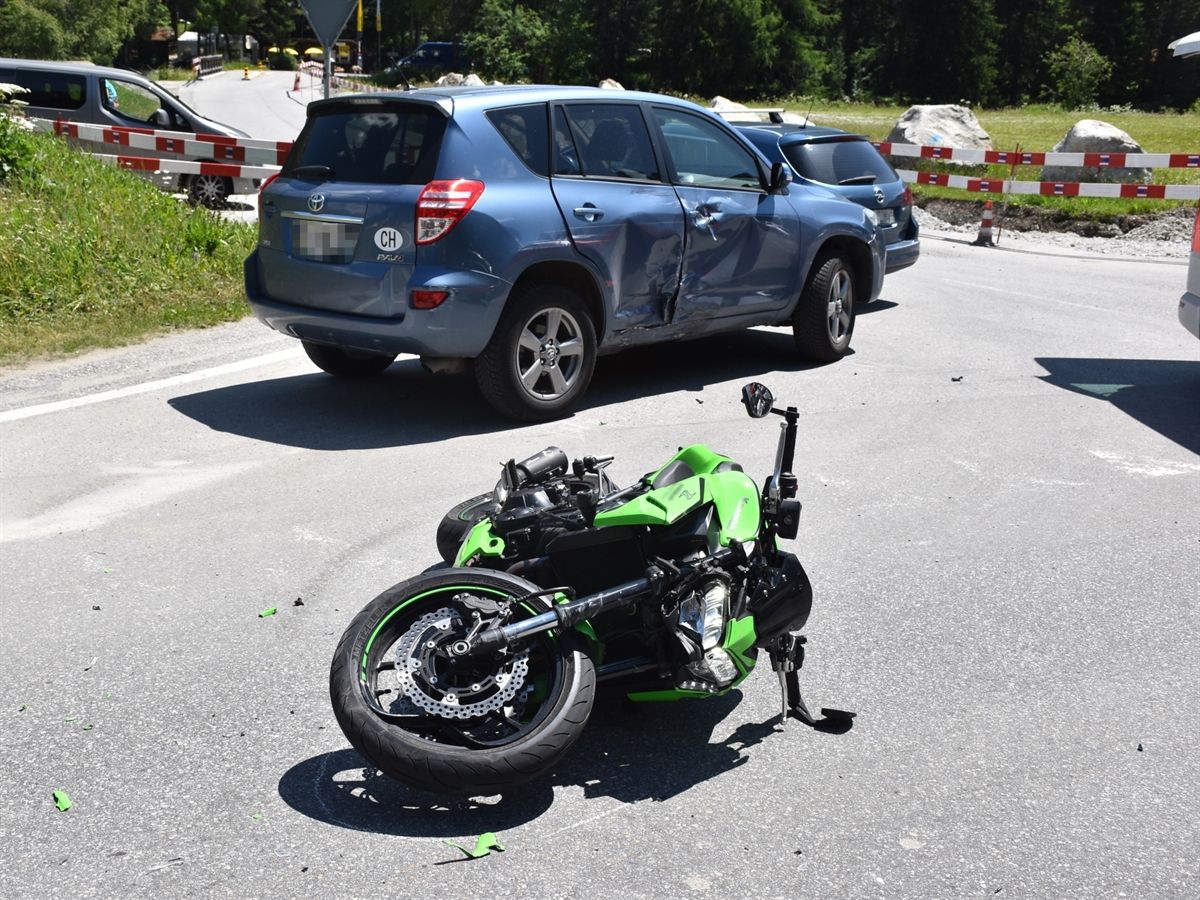Ein 77-jähriger Automobilist bog kurz nach 14.00 Uhr auf der Hauptstrasse von St. Moritz kommend links in Richtung Olympiaschanze ab. Dabei übersah er einen in Richtung St. Moritz fahrenden 35-jährigen Motorradlenker und es kam zu einer seitlich-frontalen Kollision. Der Motorradlenker verletzte sich dabei mittelschwer. Ein Ambulanzteam der Rettung Oberengadin betreute den Mann notfallmedizinisch und überführte ihn anschliessend ins Spital nach Samedan. Das beschädigte Motorrad wurde durch einen Abschleppdienst abtransportiert. Am Auto entstand Sachschaden. Die Kantonspolizei Graubünden klärt die genauen Umstände ab, die zu dieser Kollision geführt haben.