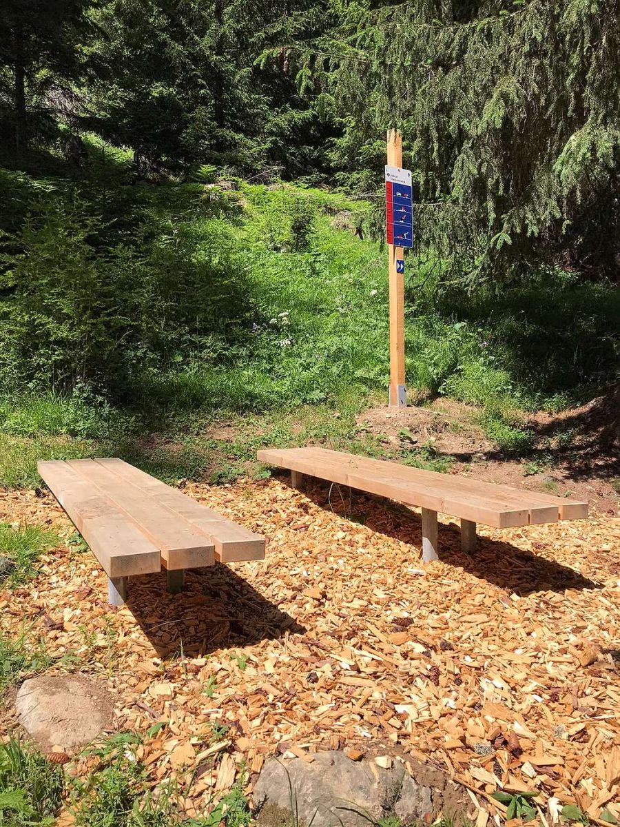 Ils ogets sül traget dal Zurich Vitaparcours a Plan da Porchs a Sent sun gnüts refats cun lain indigen. fotografia: Antonin Hugentobler