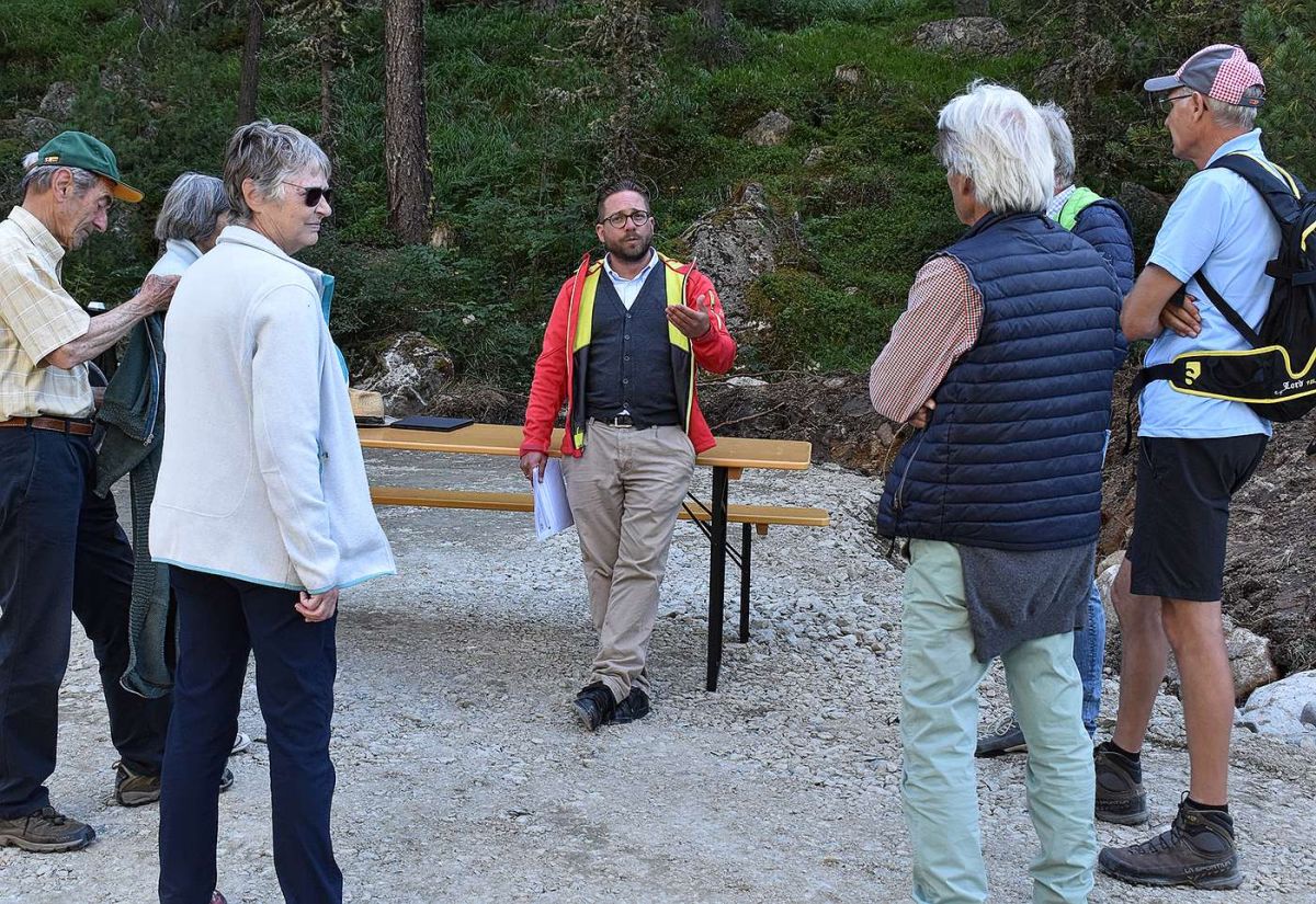 Am Mittwoch stellten die Gemeinde, das federführende Bündner Amt für Wald und Naturgefahren (AWN) und die involvierten Unternehmen das Projekt und die laufenden Arbeiten direkt auf der Baustelle vor. «Wir haben festgestellt, dass das Interesse von Einheimischen und Gästen an diesem Projekt sehr gross ist und dass es auch Vorbehalte und Kritik gibt. Mit dem «Tag der offenen Baustelle» wollen wir für jedermann die Gelegenheit schaffen, sich vor Ort direkt von den zuständigen Fachleuten informieren zu lassen», sagt Gemeindepräsidentin Nora Saratz Cazin zu den Gründen für die Veranstaltung, die von rund 60 Personen besucht worden ist.