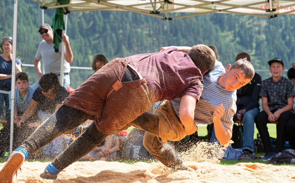 Die Sonne brennt, in die Nase steigt der Geruch von Grillwurst, Zigeunerspiess und Villigerstumpen und rund um die zwei Sägemehlringe wird angefeuert und Beifall geklatscht was das Zeugs hält. Dazwischen sind nur die knappen Kommandos der ...