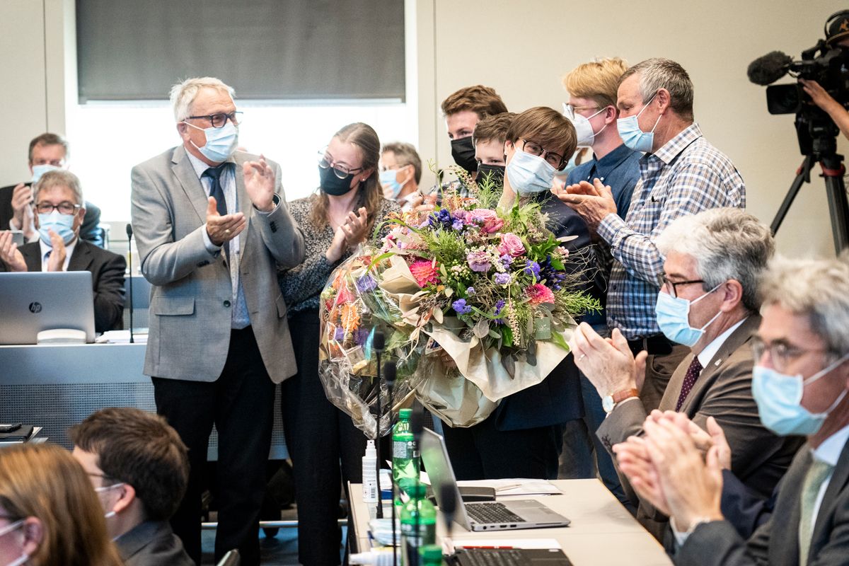 Grond applaus dal capo cumünal da Scuol, dals regents e grondcusgliers ed impustüt eir da la famiglia per la nouveletta presidenta dal Grond cussagl Aita Zanetti da Sent (fotografia: Daniela Derungs).