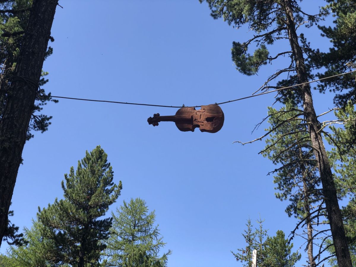 Im Jubeljahr wurde der Konzertplatz im Taiswald in luftiger Höhe mit hölzernen Skulpturen der Bildhauerin Nora Engels geschmückt.