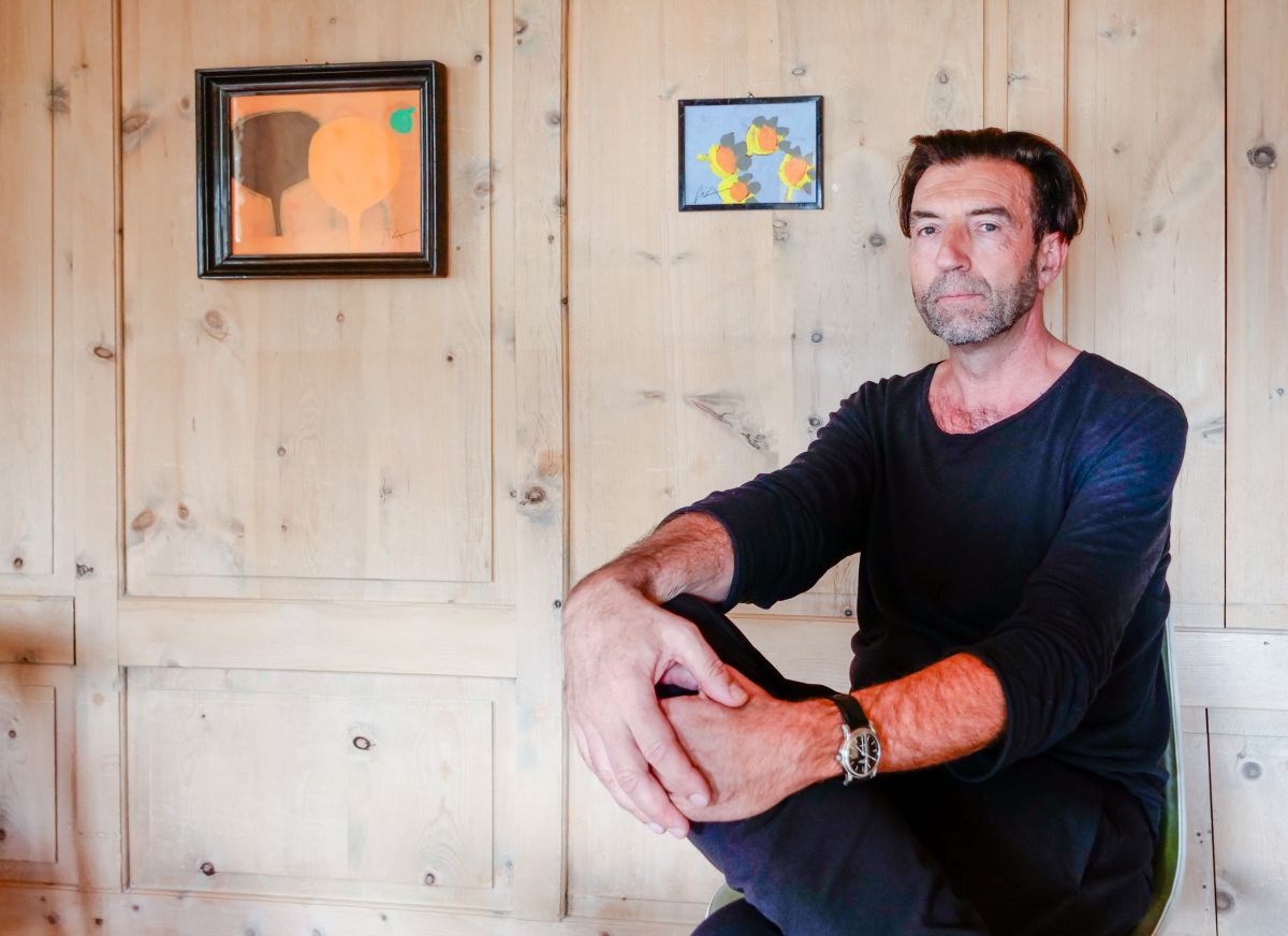 Hans «gia» Schmid e purtrets da l’exposiziun «Sweet Courage». fotografia: Jon Duschletta