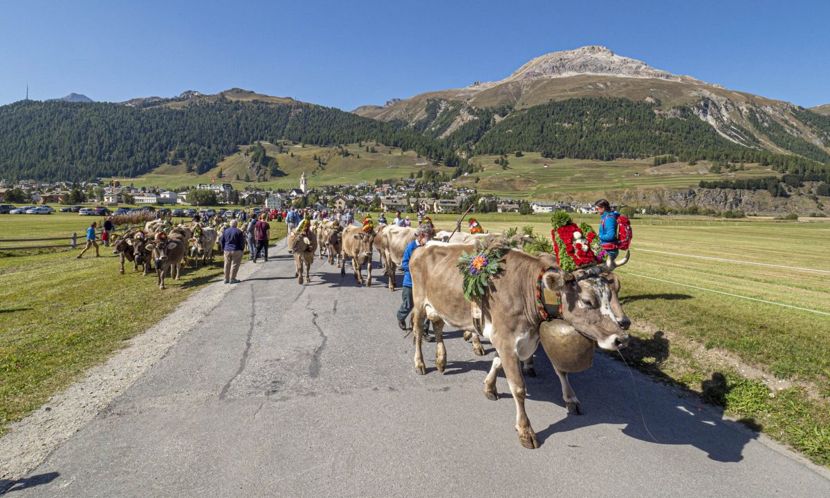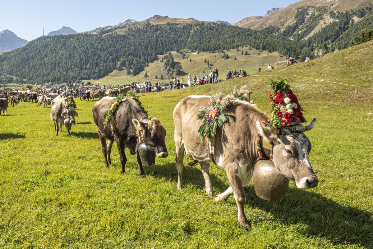 Bei der Kirche San Gian wartete auf die Wiederkäuer vor der Heimreise ein letztes Mal saftiges Oberengadiner Weidegras für diesen Sommer. Derweil sorgte der Schlittschuhclub Celerina am Grill und an der Zapfanlage für das leibliche Wohl der vielen Schaulustigen, die dem Fest zu Ehren der Vierbeiner beiwohnten. Auch der kleine Bauernmarkt und die Präsentation der alten Traktoren fanden grossen Anklang.