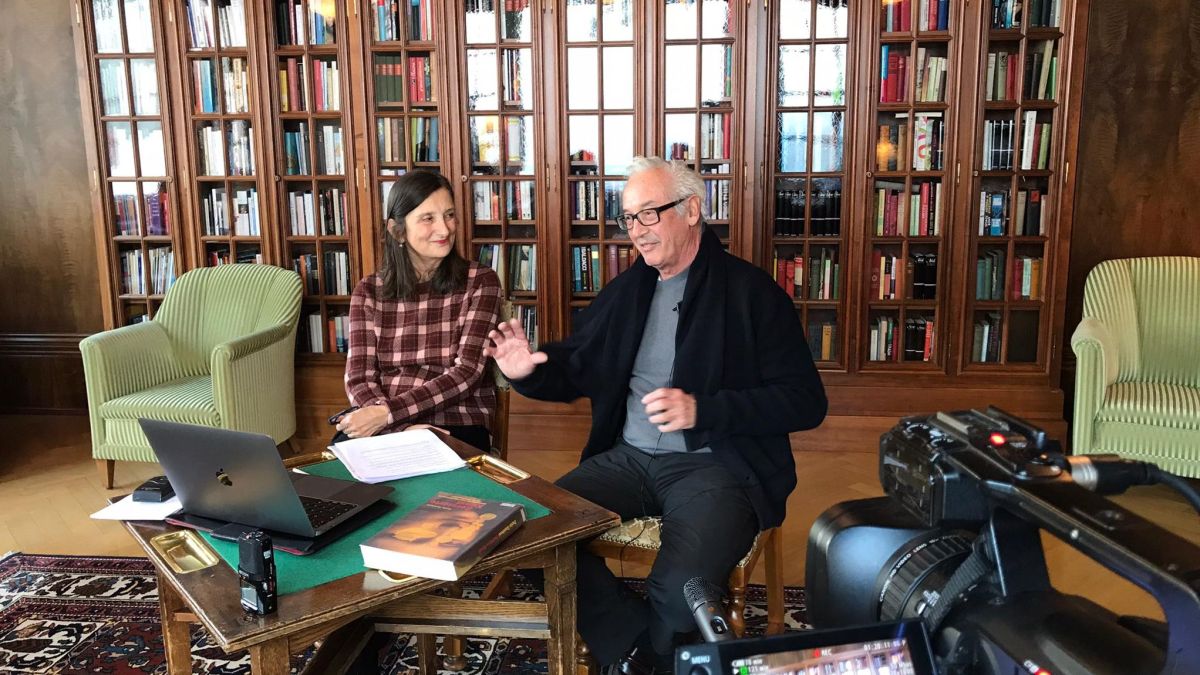 Kuratorin Bice Curiger im Gespräch mit Peter Fischli im Hotel Waldhaus Sils. Foto: E.A.T.