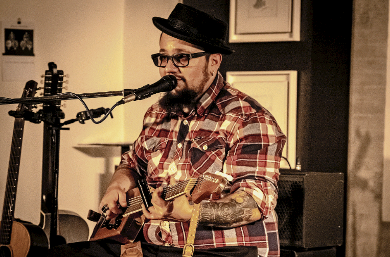 Marc Amacher ist Bluesmusiker aus dem Berner Oberland. Am Freitag spielte er in Samedan. Foto: Denise Kley