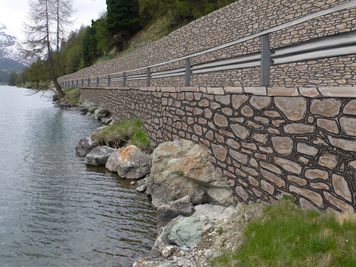 Mit diesen Wandmauern aus Stahlbeton ist das Bundesamt für Raumentwicklung nicht einverstanden. Visualisierung: Tiefbauamt Graubünden