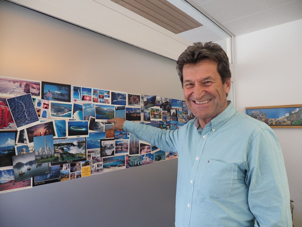 Heini Gantenbein hat viele zufriedene Kunden. Der Beweis hierfür sind die vielen Ansichtskarten in seinem Büro Viva Ferien.