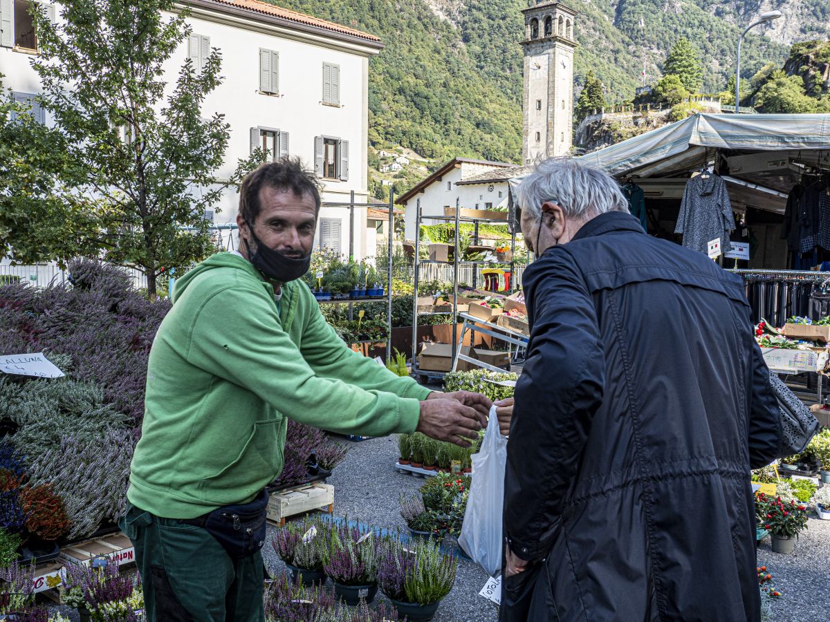 Der Wochenmarkt in Chiavenna lebt von den Familienbetrieben und kleinen Händlern.
