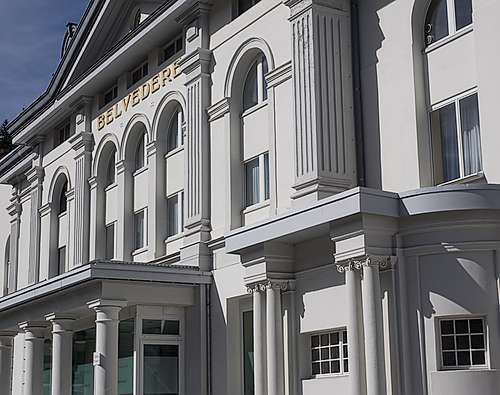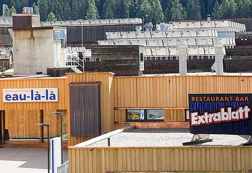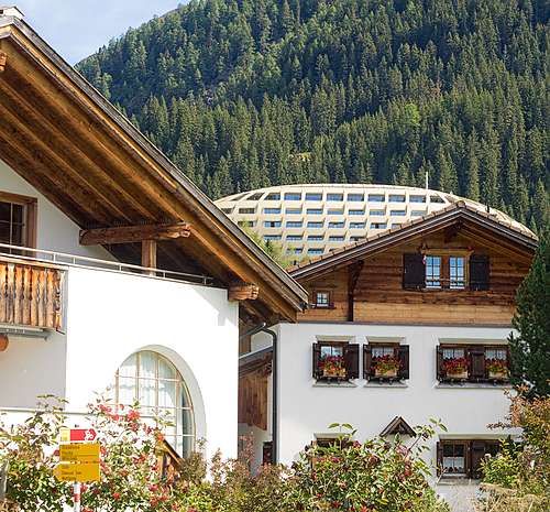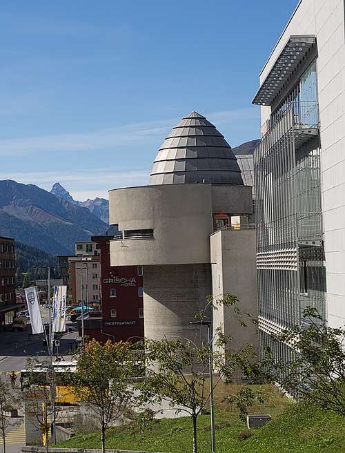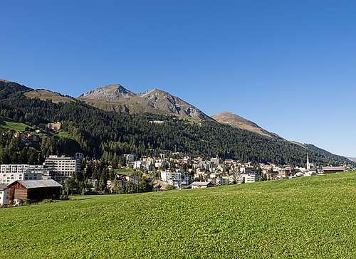 Wer beim Bahnhof Platz aussteigt, steht im modernen Davos. Hotels, Wohnhäuser, Einkaufszentren, Restaurants, Bars, das Hockeystadion, das Kongresszentrum, dazwischen Kirchen und hoch oben an den steilen Hängen eine Vielzahl von Lawinenverbauungen. Ein Sammelsurium an Baustilen, eine gewisse Einheitlichkeit ergibt sich in den im Baugesetz vorgeschriebenen Flachdächern. «Eine babylonische Fröhlichkeit», nannte Köbi Gantenbein, Chefredaktor des Architekturmagazins «Hochparterre», diese Vielfalt in einem Architekturführer «Bauen in Davos.»
