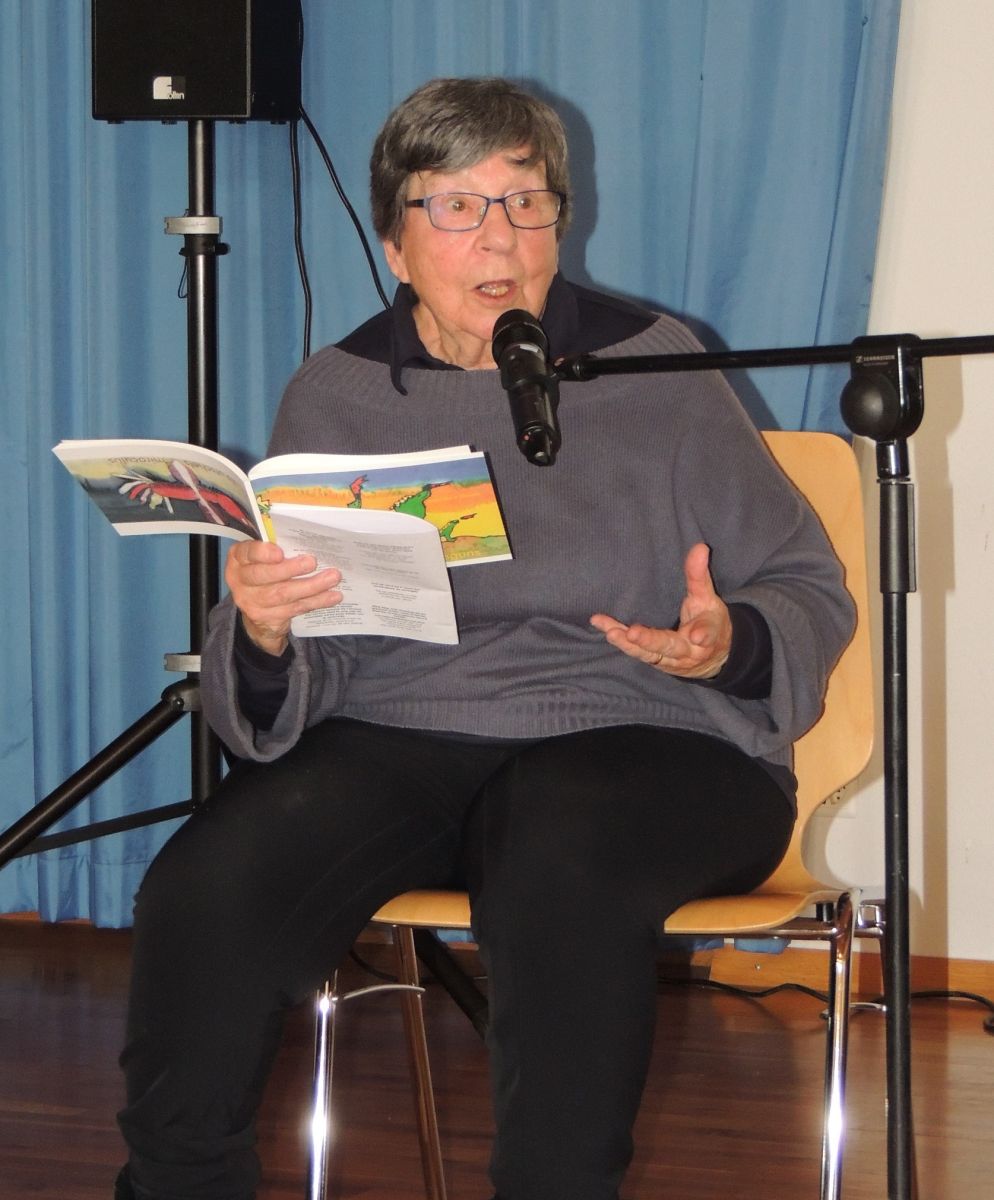 Leta Mosca ha preschantà in occasiun dal giubileum da la Biblioteca Sent las lavuors dals scolars da l’on 2001 (fotografia: Benedict Stecher).
