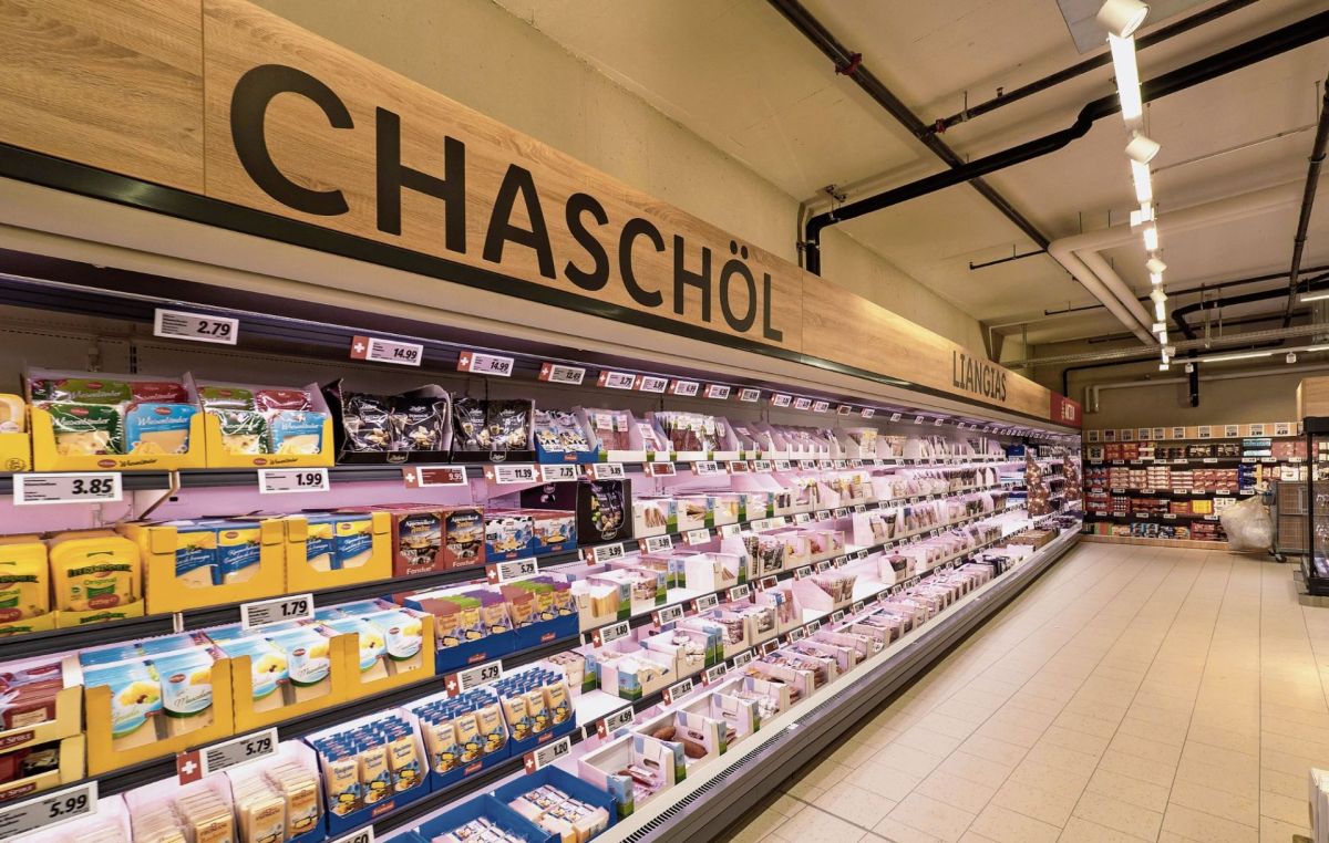 auf einer Verkaufsfläche von 1000 Quadratmetern. Produkte sind auch auf Romanisch gekennzeichnet.