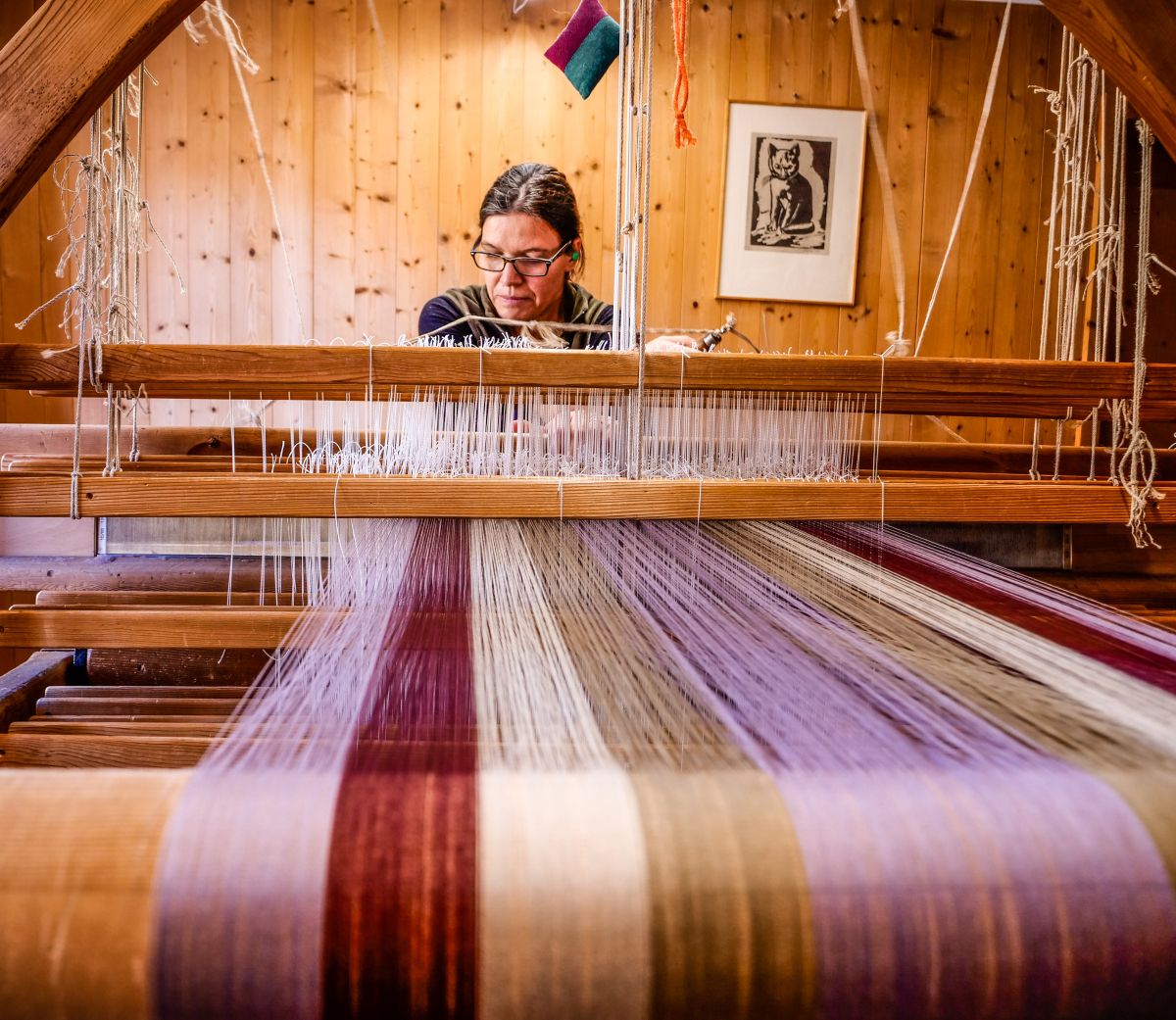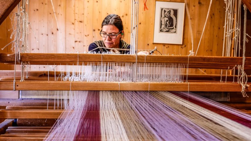Martina Marcona Moser sitzt konzentriert an einem Webstuhl, versunken in den Musterentwurf eines Stoffs. Sie ist in der Val Müstair geboren und aufgewachsen und arbeitet seit 40 Jahren in der Tessanda in Sta. Maria. Ihre aktuelle Arbeit ...