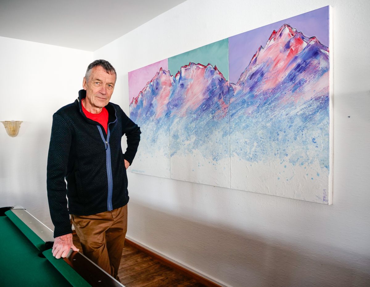 Seit sechs Jahren bereichert Rolf Bräm das Hotel Schweizerhaus in Maloja mit Bergbildern aus dem Engadin und dem Bergell. Wenn am Freitag das Hotel zur Wintersaison öffnet, lädt die «Alpine-Art-Tour» Hausgäste und Auswärtige ein, Bräms neue Bergwelten zu entdecken.