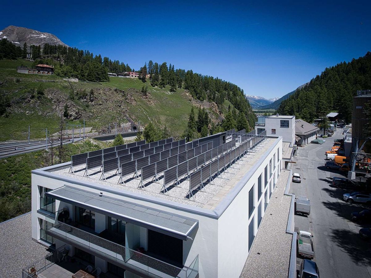 25 Kilowatt-Peak Leistung liefert die 2017 von St. Moritz Energie erstellte bifaziale PV-Anlage auf dem sanierten Wohngebäude. Fotos: St. Moritz Energie