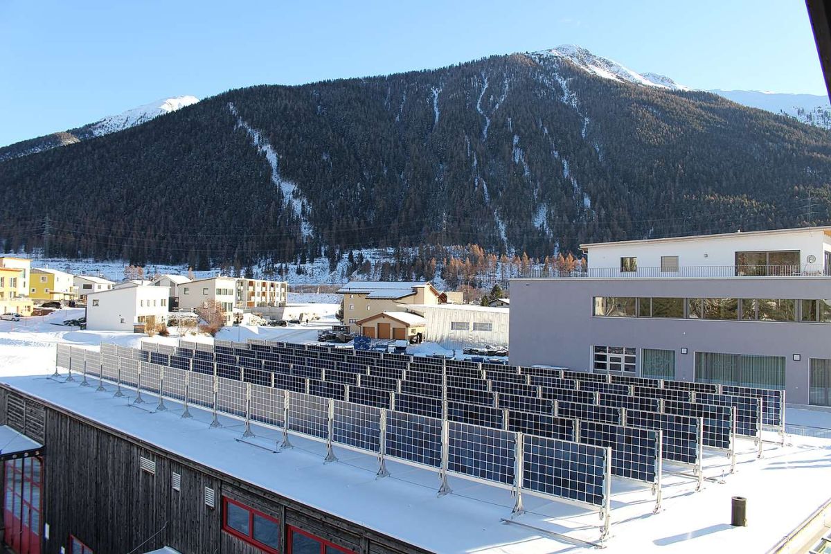 Kürzlich hat die Engadiner Kraftwerke AG auf dem Flachdach ihres Werkstattgebäudes am Firmensitz in Zernez eine bifaziale Photovoltaik-Anlage in Betrieb genommen. Eine solche PV-Winterstromanlage steht seit 2017 auch schon auf dem Dach der Liegenschaft von St. Moritz Energie in St. Moritz.