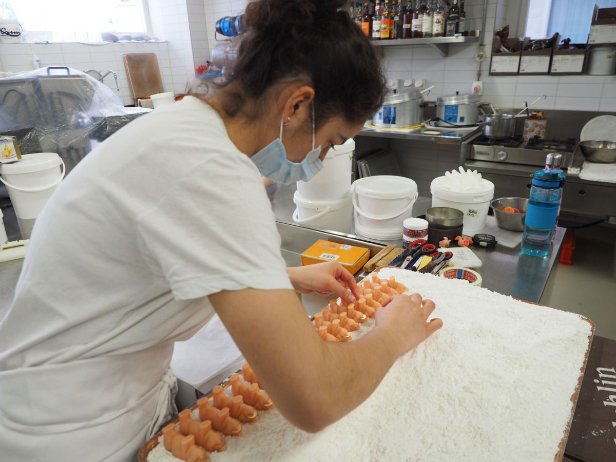 Zwischen Weihnachten und Neujahr hat das Konfiserie-Team Hanselmann alle Hände voll zu tun und kommt mit der Herstellung von Pralinen und anderen Leckereien fast nicht nach. Ruhiger ist es im Café- und Restaurant-Bereich, wo die Gäste, offenbar wegen Corona, fehlen.