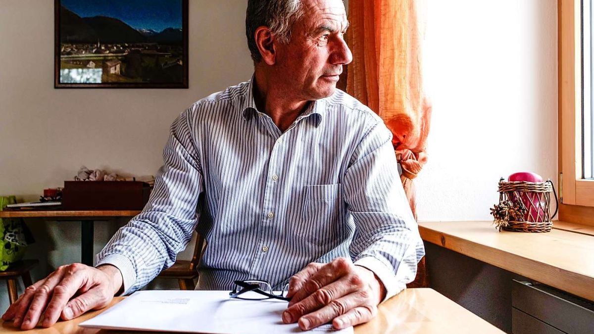 Primo Semadeni, Vorstandsmitglied von Gastro Graubünden und Präsident der Sektion Mittleres Engadin in seinem Restaurant «Da Primo» in Bever. Vor sich das Kuvert mit dem Antrag auf Härtefallentschädigung. Foto: Jon Duschletta