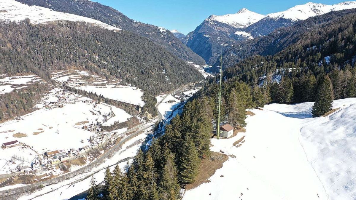 L’antenna sü Mot as rechatta da la vart dretta da l’En, da l’otra vart as vezza la fracziun da Strada (fotografia: Mario Denoth).