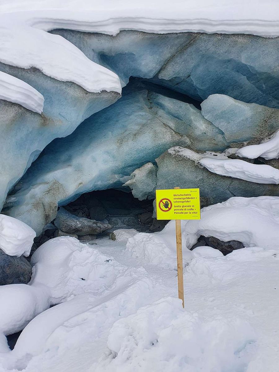 Auch in diesem Winter hat sich wieder eine Gletscherhöhle gebildet. Drei Minuten zu Fuss vom Ende der Langlaufloipe und des Wanderweges problemlos erreichbar. Nun aber warnt die Gemeinde Pontresina vor dem Betreten dieser Höhle. Nach Einschätzung von Bergführern sei eine Begehung unter Umständen lebensgefährlich, die Eismassen über der Höhle seien in ständiger Bewegung und damit instabil.