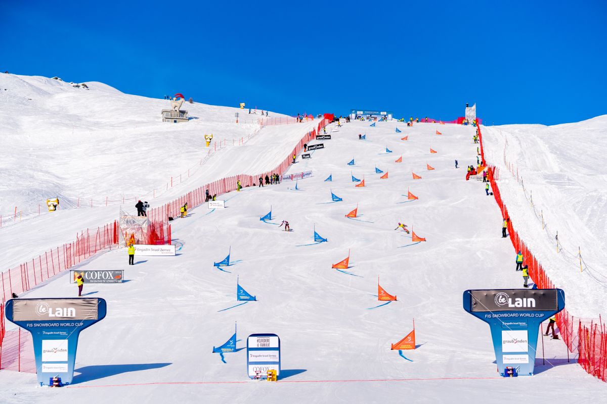 Die Gemeinde Scuol mit dem Snowboard-Hang in Prui hat sich im Alpin-Snowboard-Weltcup-Kalender etabliert (Foto: Dominik Täuber/TESSVM).
