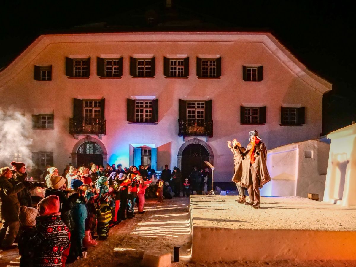 Die Samedner Schneebühne als stimmiger Ort für leise Zauberparodie. Foto: Jon Duschletta