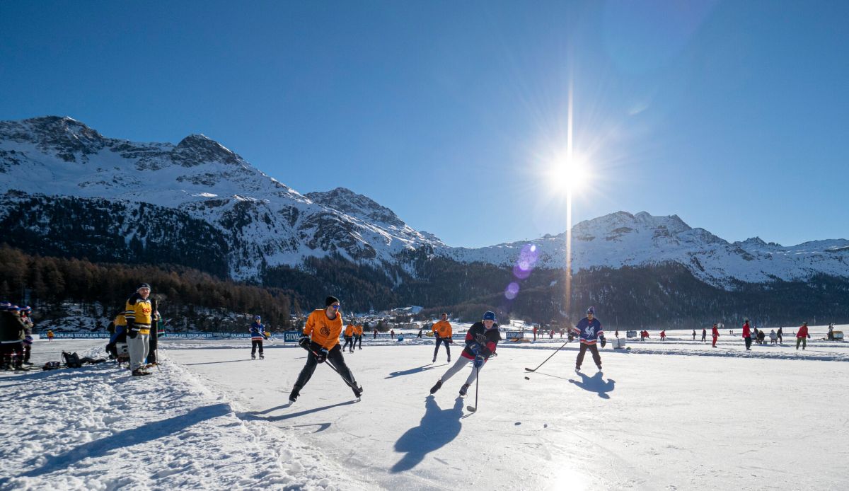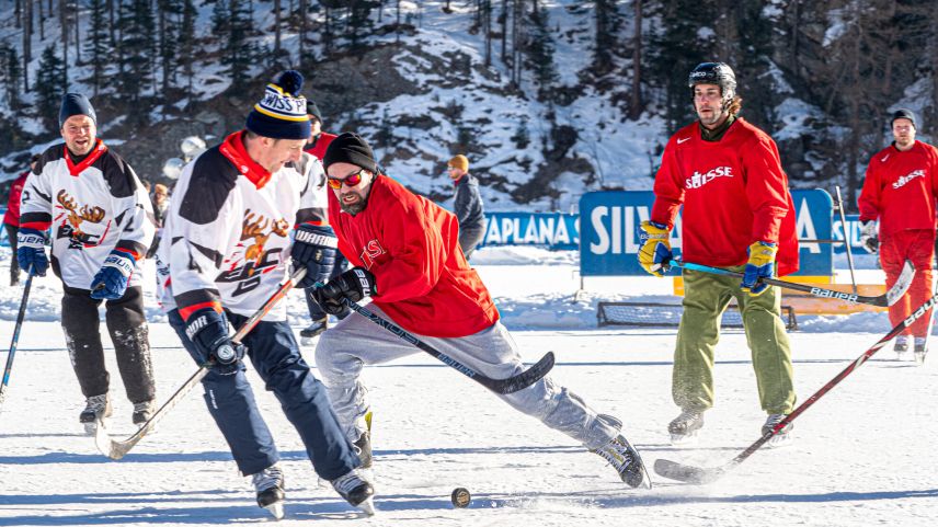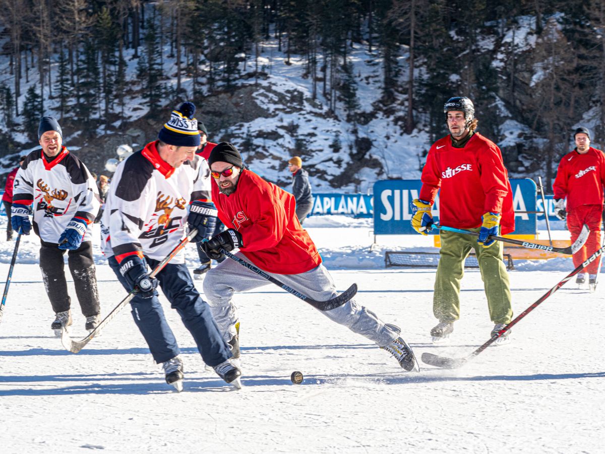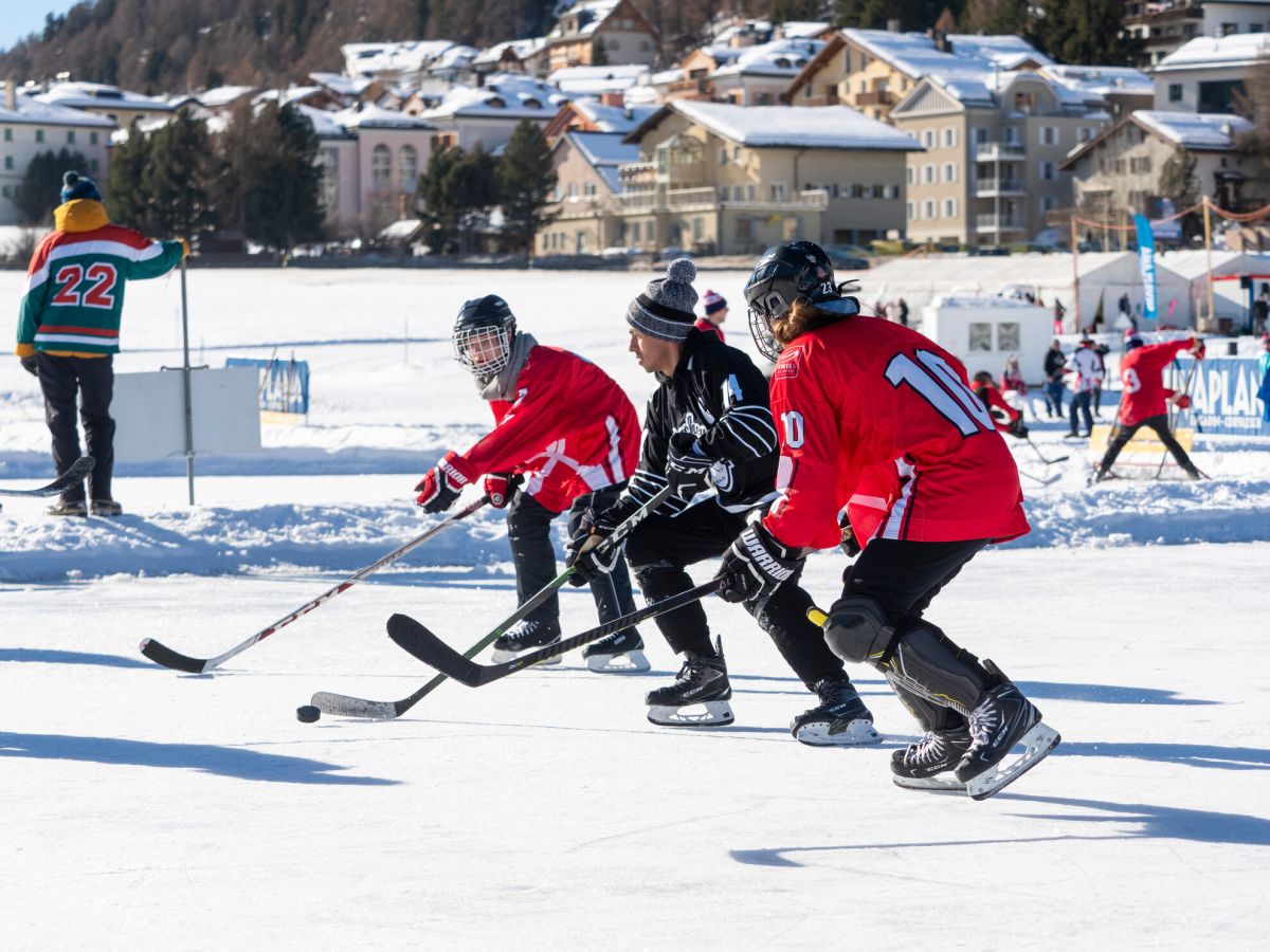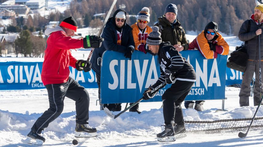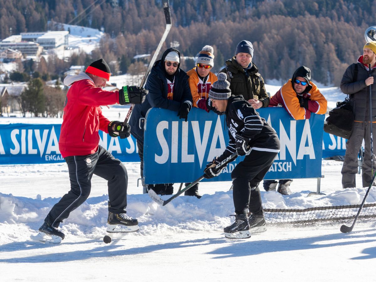Beim Pondhockey handelt es sich um eine Urform des heutigen Eishockeys. Gespielt wird auf 20 mal 40 Metern grossen Spielfeldern. Die Tore sind so breit wie normale Eishockey-Tore, aber nur 20 Zentimeter hoch. Gespielt wird mit Vierermannschaften zu jeweils zwei Halbzeiten à 15 Minuten. Ohne Torhüter, und Körperkontakt ist verboten. Deshalb sehen die Spielerinnen und Spieler in ihren Skihosen, Jeans oder Trainerhosen einiges filigraner aus als ihre gepanzerten Pendants. Und weil der physische Kontakt wegfällt, sind ältere, junge und gemischte Teams auf den Rinks zu sehen. In Silvaplana haben 61 Teams gespielt. Beim Turnier steht klar der «Plausch» im Vordergrund. Neben den einheimischen Equipen waren Teams aus allen Regionen der Schweiz und sogar aus anderen europäischen Ländern angereist. (dz)