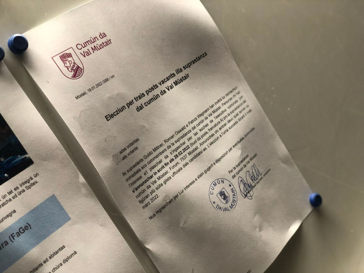 Publichà eir in tabla naira – principi da l’eivna han inoltrà trais dals set commembers da la suprastanza cumünala da Val Müstair lur demischiun. Il cumün sto uossa tscherchar rimplazzants (fotografia: David Truttmann).