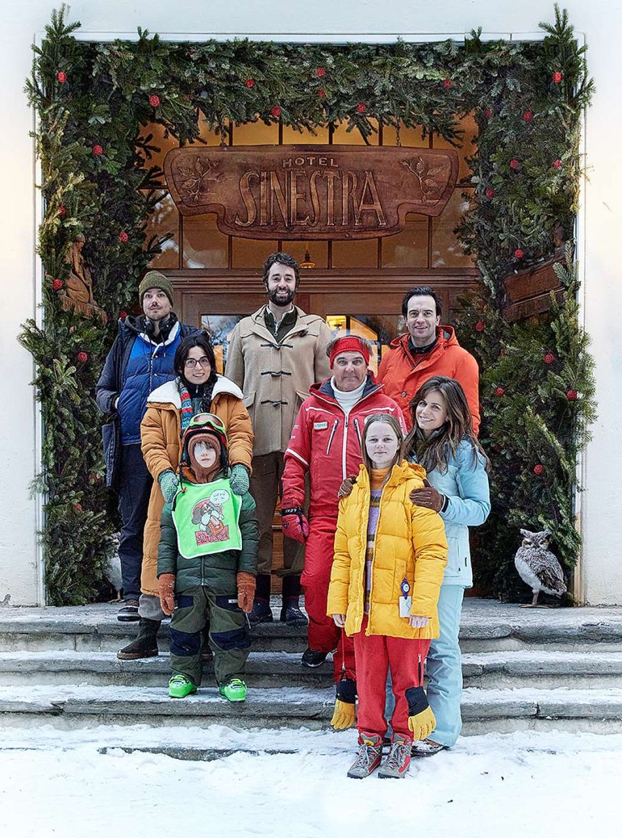 Michiel ten Horn (redschia), Sinem Kavus, Isacco Limper, Martijn Hillenius (scenari), Daniel Rohr, Bobbie Mulder, Jeroen Spitzenberger ed Elise Schaap davant l’Hotel Val Sinestra. fotografia: Zodiac Pictures
