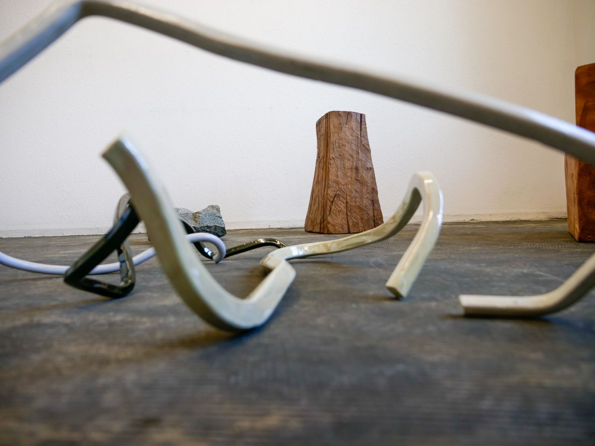 «Counter Views» mit Werken von Stéphanie Bächler (vorne) und Holzskulpturen von Reto Grond. Foto: Jon Duschletta