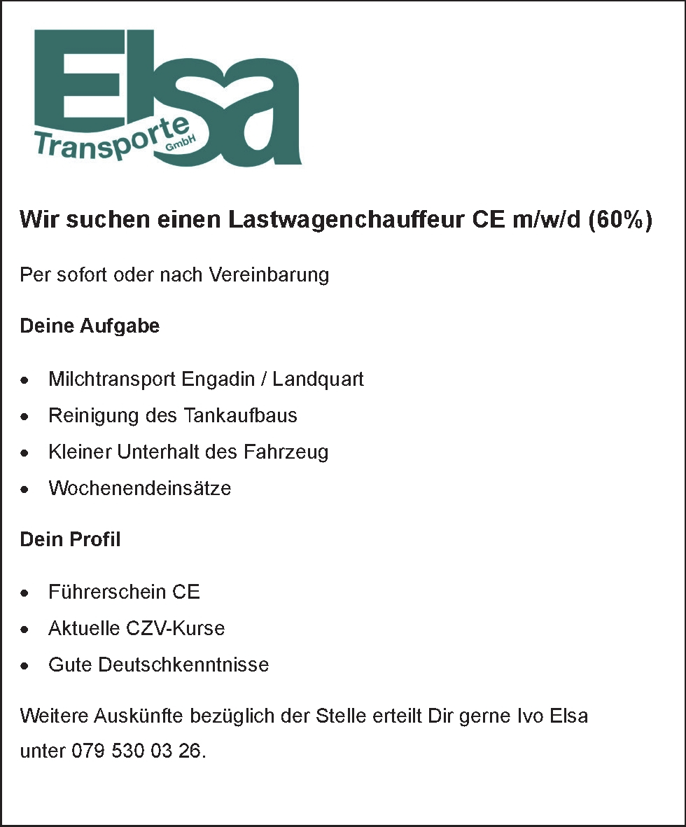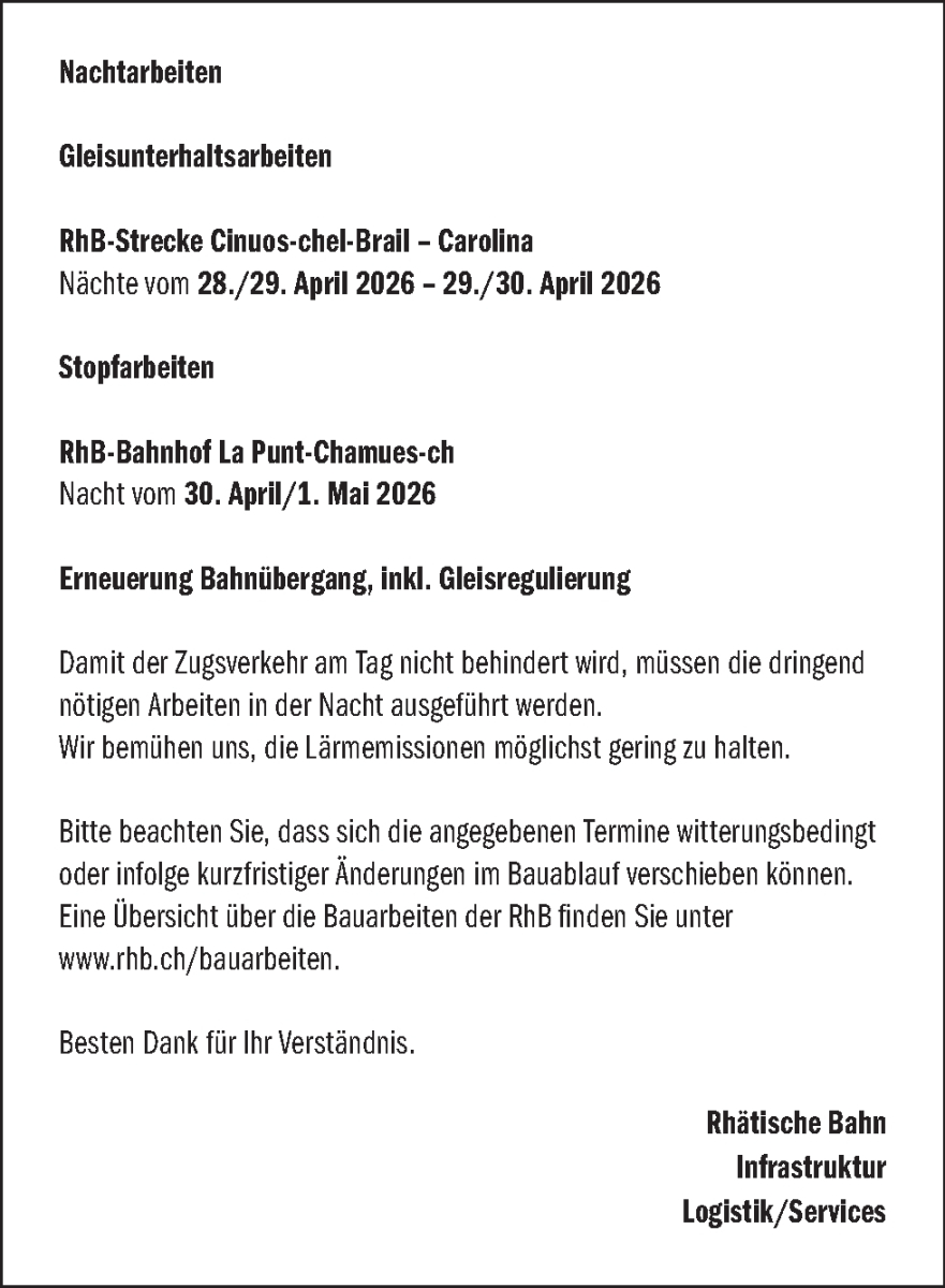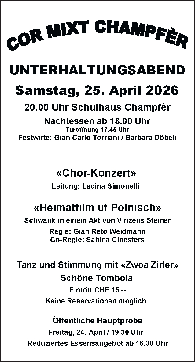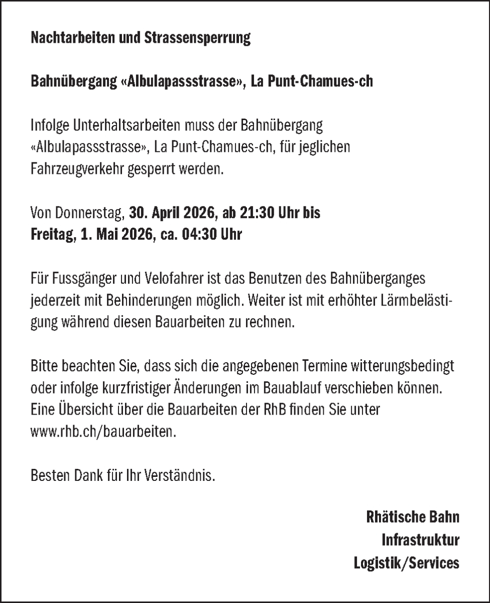 Um den Artikel in voller Länge lesen zu können abonnieren Sie die «Engadiner Post/Posta Ladina» oder loggen Sie sich ein. Wir wünschen eine interessante Lektüre.