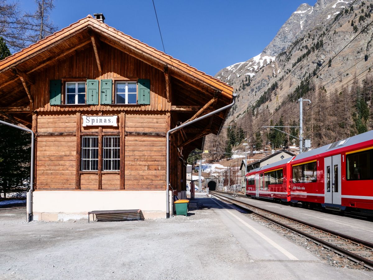 Das altehrwürdige RhB-Stationsgebäude von Spinas wurde in den letzten beiden Jahren sanft saniert. Nun folgen noch die Gleisarbeiten. Foto: Jon Duschletta