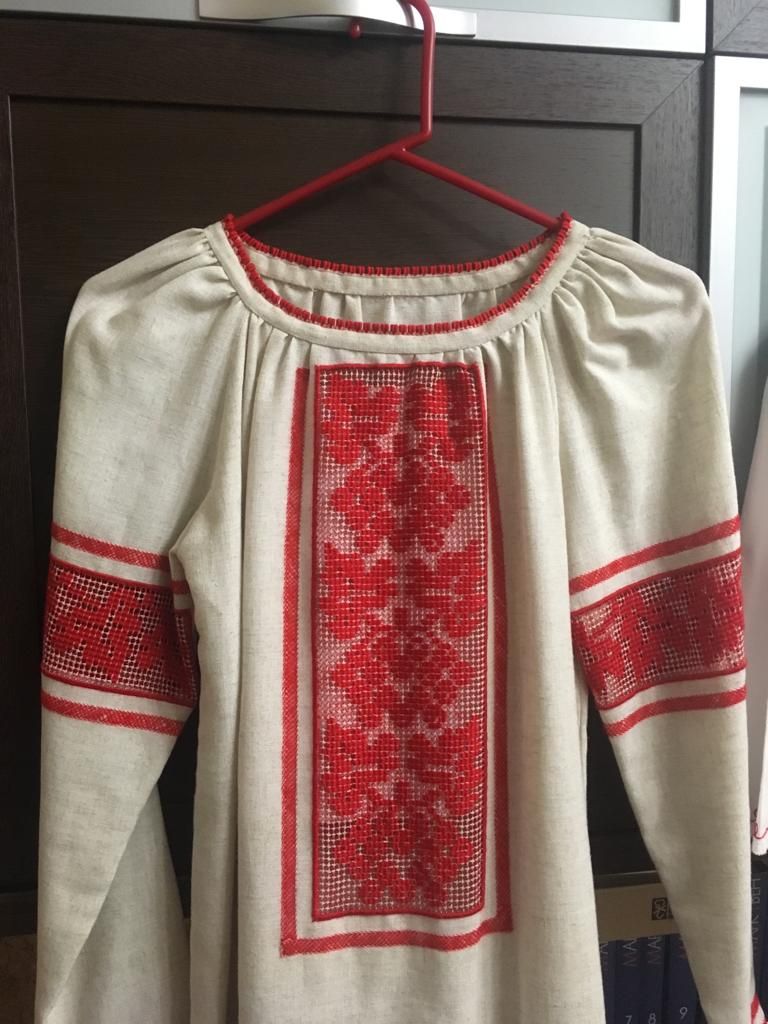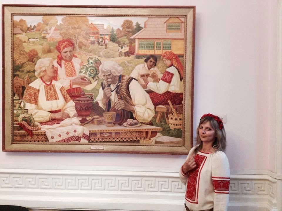 Oksana Natalich beherrscht das traditionelle, ukrainische Stickereihandwerk. Inspiration holt sie sich im Museum Sumy.