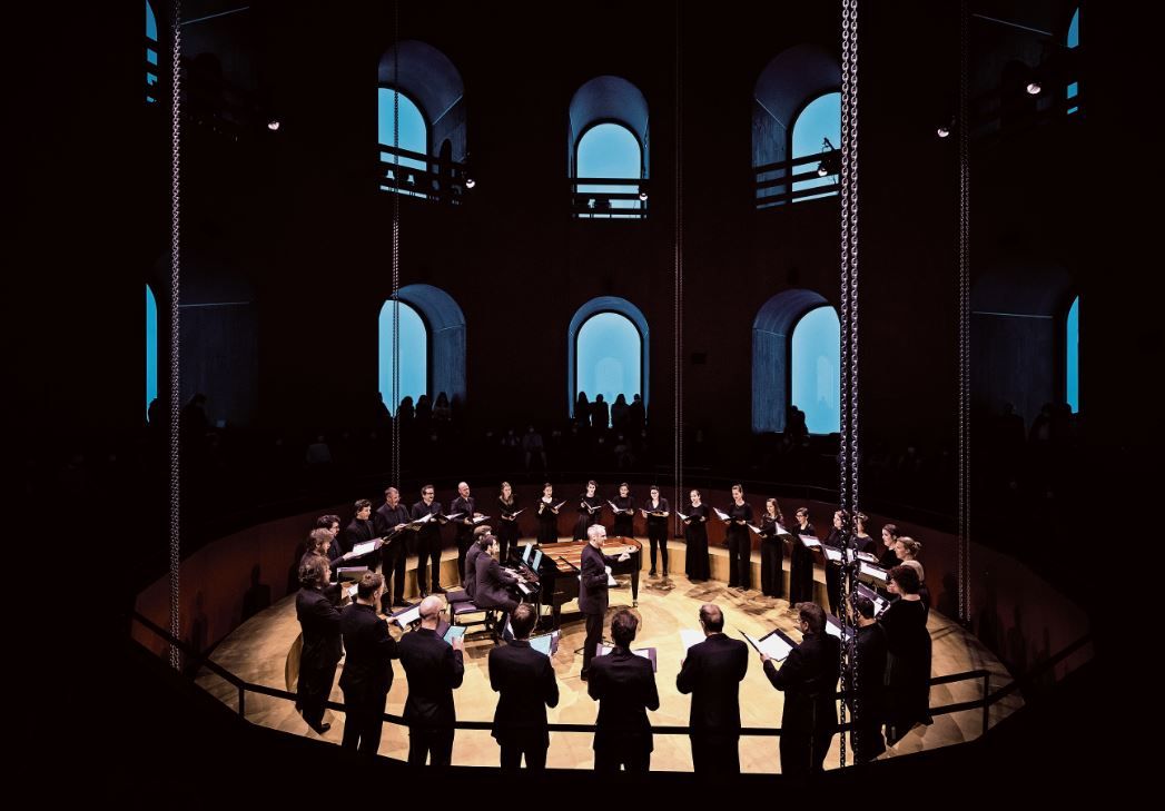 Das Origen Vocal Ensemble unter der Leitung von Clau Scherrer im Julierturm.