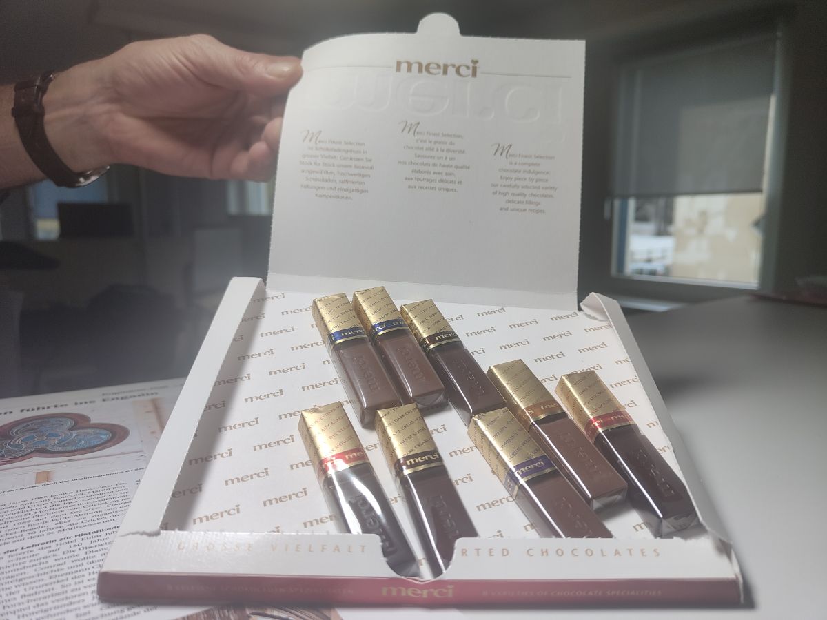 Ich habe das Glück, mit Redaktionskollegen zusammenzuarbeiten, die neben der spitzen Zunge und Feder auch einen süssen Zahn besitzen. Kein Wunder, heisst es doch, dass insbesondere Schokolade einen stressmindernden und glückssteigernden Effekt hat. Offenbar wird durch den Verzehr einer halben Tafel der Ausstoss der Stresshormone Adrenalin und Cortisol aus der Nebenniere gebremst und der Ausstoss des Glückshormons Dopamin beschleunigt, wie ein Forschungsergebnis der Universität Bern aufdeckte. Direkt hinter meinem Schreibtisch auf dem Pult liegt also zumeist Schokolade aus. Was mein Risiko für Diabetes natürlich – im Vergleich zu dem meiner Kollegen – enorm steigert, da ich von der Zuckerstation nur eine Stuhldrehung entfernt bin. Besonderer Beliebtheit erfreuen sich die Merci-Pralinen. Sobald das Rascheln der sich öffnenden Packung ertönt, stürzen sich die werten Kolleginnen und Kollegen und meine Wenigkeit wollüstig auf die Schoggi-Selektion. Und interessanterweise hat fast jeder «seine» präferierte Sorte, was dem allgemeinen Redaktionsfrieden zugutekommt, da wir uns die begehrten Leckereien im Zuckerwahn nicht gegenseitig aus den Händen reissen. Layouterin Andi zum Beispiel hat ein Faible für die Marzipan-Praline, welche der Rest der Redaktion abgrundtief verschmäht. Korrektorin Birgit präferiert den exotisch anmutenden braun-weissen Kaffee-Sahne-Riegel. Produzent und Redaktor Dan bevorzugt die bodenständige Haselnuss-Variante. Und ich? Ich bin aus Schokoladensicht praktisch Omnivore und esse fast alles. Und wenn Andi in den Ferien ist, ich mich über eine Schreibblockade ärgere und es mich nach inspirierenden Glücksmomenten gelüstet, greife ich sogar zu dem allgemein verhassten und liegen gebliebenen überzuckerten Marzipan-Konfekt. Denn in der Not frisst der Teufel bekanntlich Marzipan. (Und klagt dann irgendwann über Diabetes.)